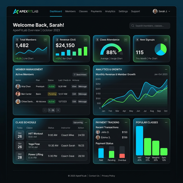 A full-stack SaaS platform for gym owners with member management, class scheduling, payment tracking, and fitness analytics. Features multi-tenant architecture with isolated gym instances and white-label support.
